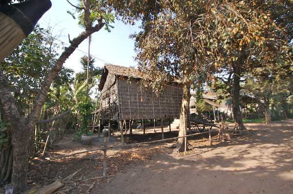 Caption: Driving east of Angkor: typical house construction