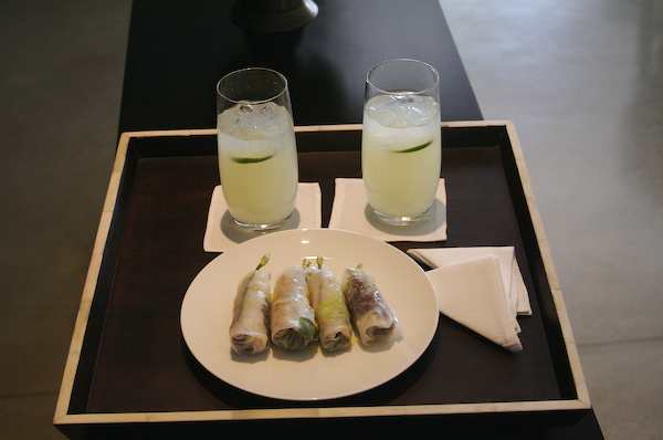 Caption: In the room, fresh lemonade and spring rolls to welcome us