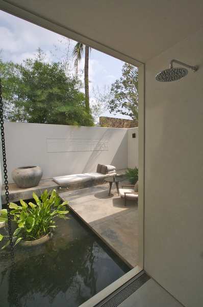 Caption: The view from the shower onto our private patio