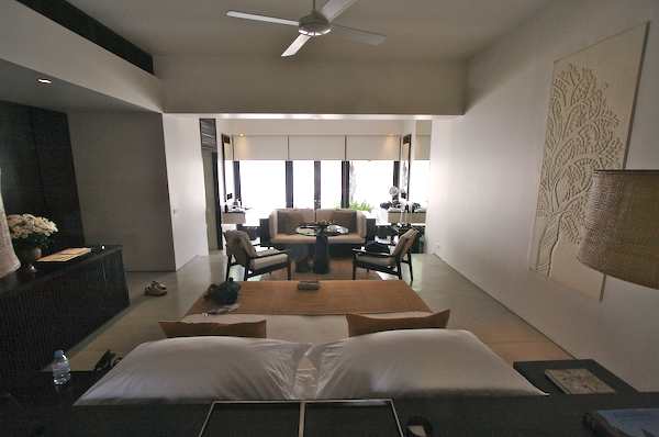 Caption: Amansara, our room from the desk looking towards the patio
