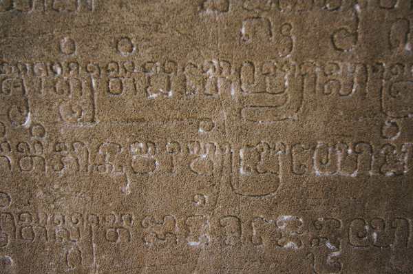 Caption: Ta Keo: Khmer inscriptions in the doorway
