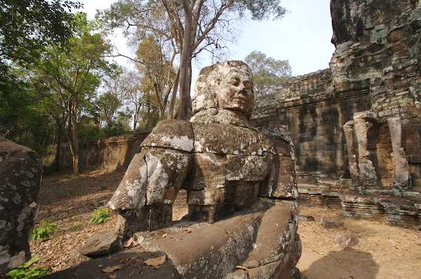 Caption: Victory Gate Ankor Thom: statue detail with 3 faces