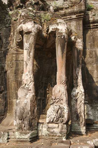 Caption: Victory Gate Ankor Thom: elephants as columns