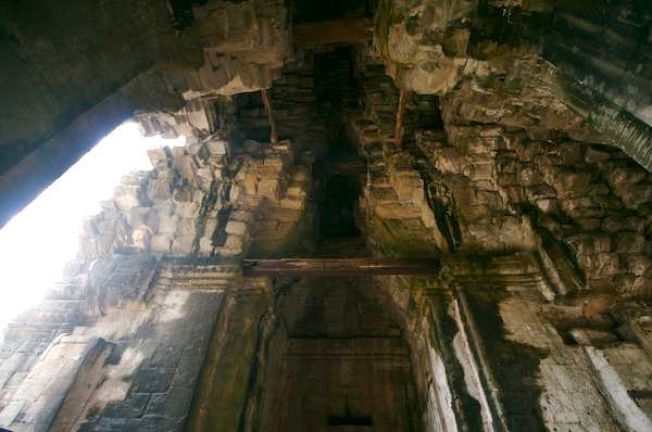 Caption: Victory Gate Ankor Thom: looking up inside the gate