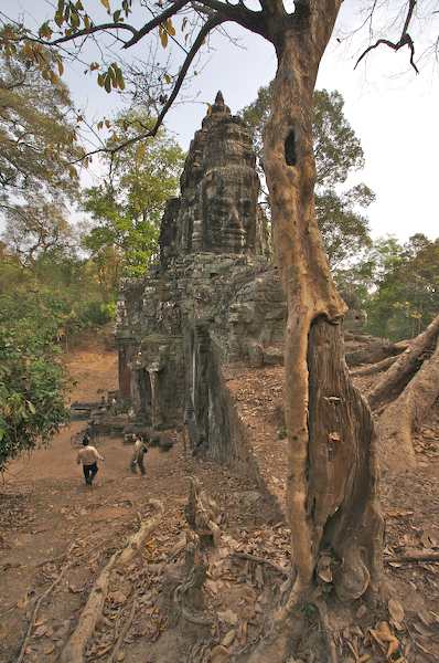 Caption: Victory Gate Ankor Thom: Beth walking down from the top of the wall