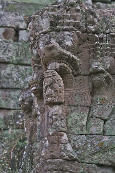 Caption: Victory Gate Ankor Thom: close uo of multi-head snake