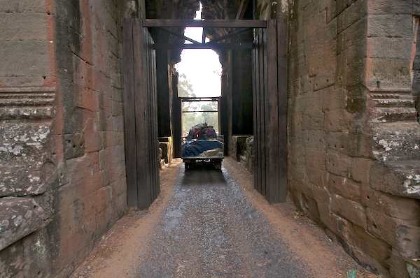 Caption: Victory Gate Ankor Thom: truck driving through gate