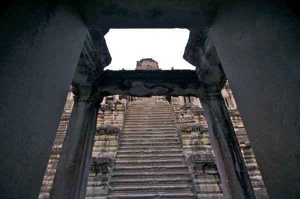 Caption: Ankor Wat: stairs through the remains of a doorway
