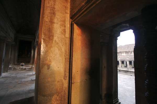 Caption: Ankor Wat: sunrise lighting interior walls