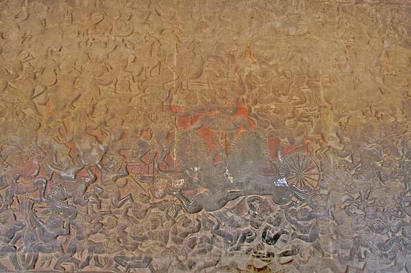 Caption: Ankor Wat: carving with remnants of color