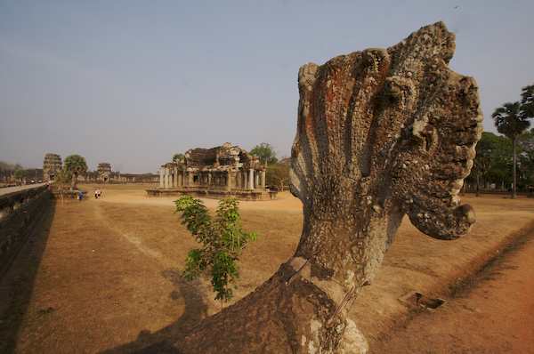 Caption: Ankor Wat: Back of naga head with library along main causeway