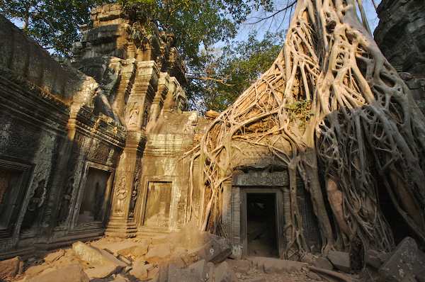 Caption: Ta Prohm: incredible roots surrounding the doorway