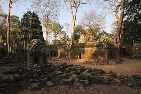 Caption: Ta Prohm: wide view of trees overgrowing walls
