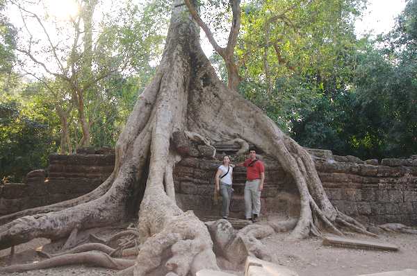 Caption: Ta Prohm: Michael and Beth with tree roots