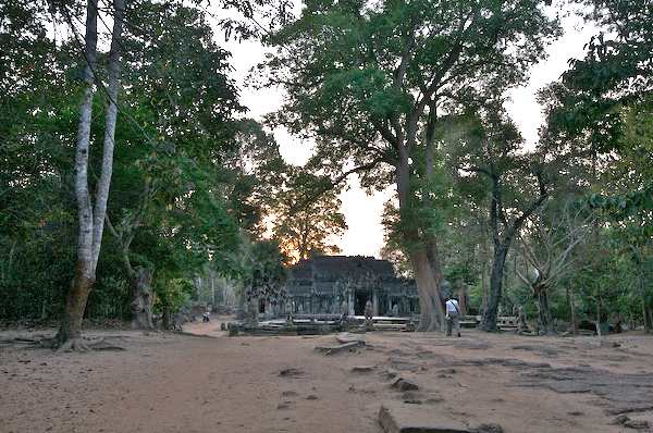 Caption: Banteay Kdei: approach at sunset