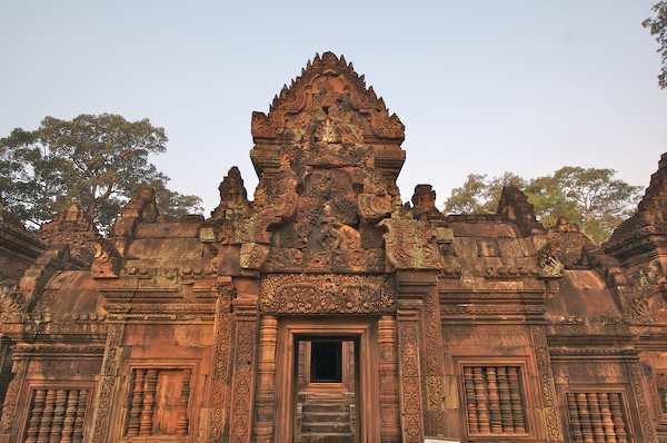 Caption: Banteay Srei: looking in through the doorway