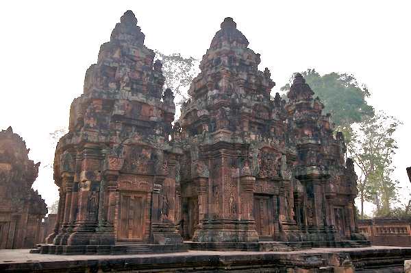 Caption: Banteay Srei: three towers