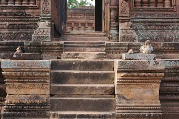 Caption: Banteay Srei: missing statues and doorway