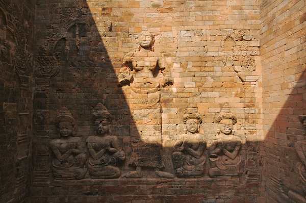 Caption: Prasat Kravam: carvings lit through the doorway