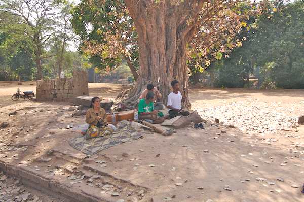 Caption: Bakong: a band plays for money for landmine victims