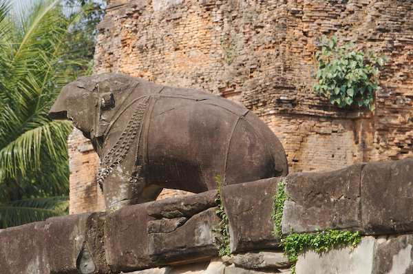 Caption: Bakong: Elephant in front of brick tower