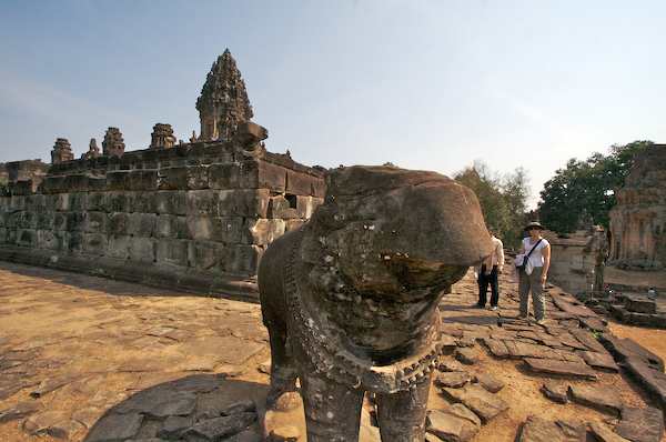 Caption: Bakong: Elephants on the corners, Beth in the background