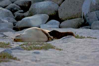 Sea Lions work and play very hard while in the water, and they get cold, so on the beach, they do little except sun-bathe and sleep, with the exceptions of the pups, who are constantly looking for a meal