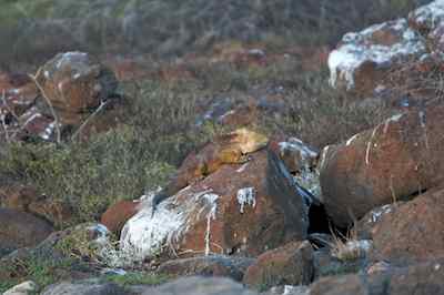 Of course the flip side of survival of the fittest, is death and as the islands do not have any large scavengers, there are dead things everywhere... here's a dead Iguana and a Live Land Iguana on a rock... notice the white rocks... a recurring joke the naturalists made was that birds like white rocks... actually the white is bird poo, so while it's true that the rocks the birds habitually perch on are white, the causation runs counter to the correlation.