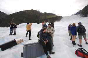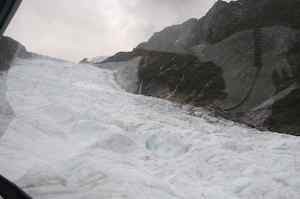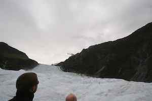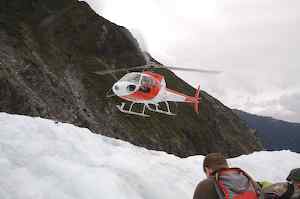 More Ice... Every trip has it's keeper photo, here's this one Our guide wouldn't let us go under the arch, but she did let us all take photographs in front of it... then we tromped back to the landing pad to wait for the helicopter to take us back Take a look at the weather out the helicopter windows... Our trip had been the first one to go for three days, and they canceled the trip right after us. |