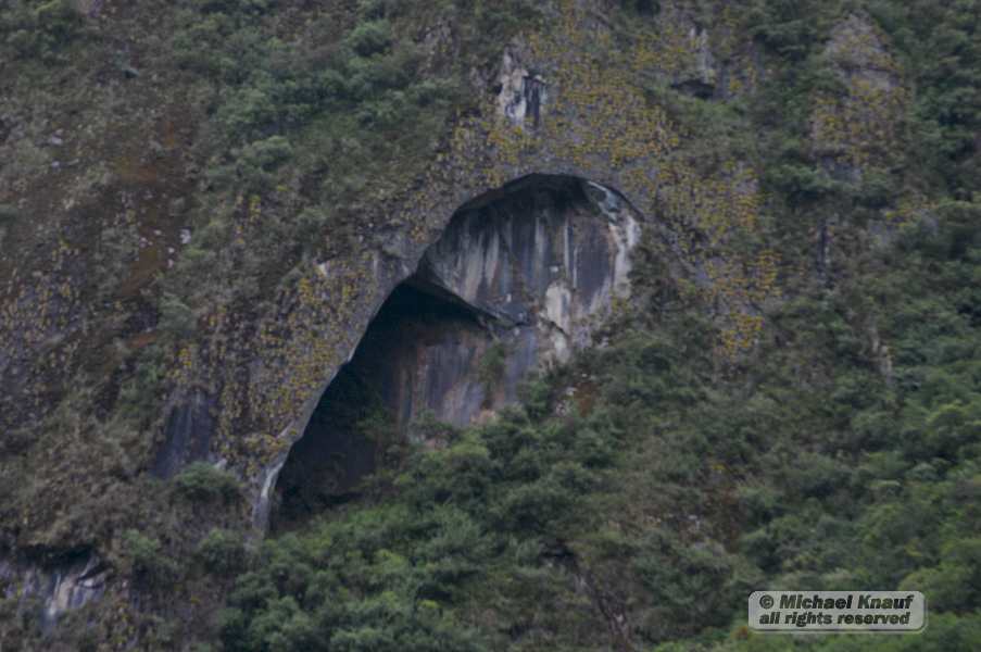 A Cave in the side of the mountain from the train station by Machu Picchu